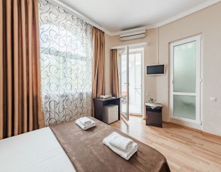 Поездом до ж/д вокзала Адлер, далее на автобусе №554/54, 131, 509/109, 532/132, 559/59, 571/171 до остановки «Торговый центр Новый век», далее пройти 870 м до отеля.