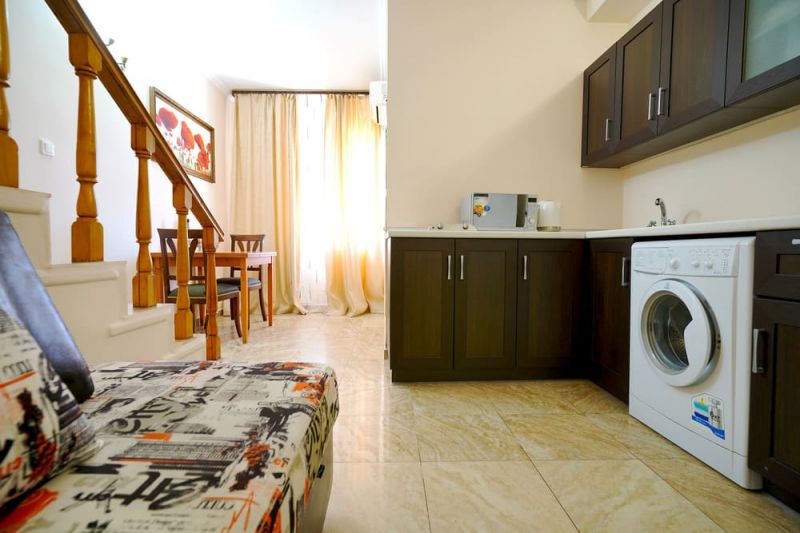 Всего в 20 метрах расположен городской пляж. На галечном побережье работают бары, установлены лежаки, навесы, раздевалки, большой выбор водных развлечений для детей и взрослых.
